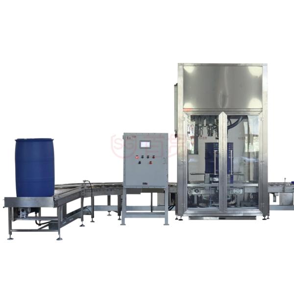 A: The brand name is 200L IBC fully automatic multi-functional opening, filling and capping production line.
